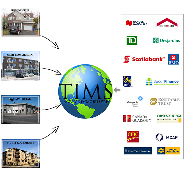The reason for TIMS INC is to become the leader in the real estate field and mortgage in Canada and throughout the world, in the residential sector, Multi-housing, Commercial and Semi-Commercial . By offering the two services to its customers and by having a partnership with all the major Canadian Banks and Financial Institutions.